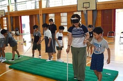3年生総合的な学習のテーマは、日立市の福祉です。今日は、様々な体験をとおして高齢者や障がいのある方の身になって考え、誰にもやさしいまちづくりを考えるための授業です。日立市社会福祉協議会の方を講師に招き、有意義な体験学習となりました。