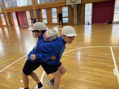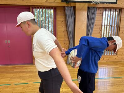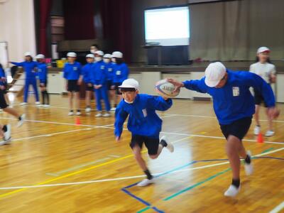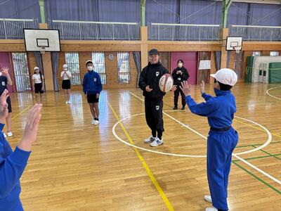 今日は、ラグビー元日本代表の林泰基さんにお越しいただき、「失敗から学ぶ生き方」の講話を聴いたり、ラグビー競技をとおした探究的な学びを体験したりしました。
