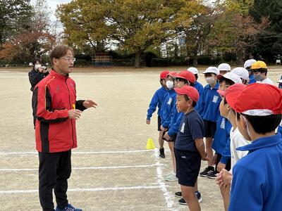 今日は、6年生の授業に日立市陸上競技協会からゲストティーチャーをお迎えして、短距離走・ハードル走・幅跳び・ソフトボール投げについて学びました。